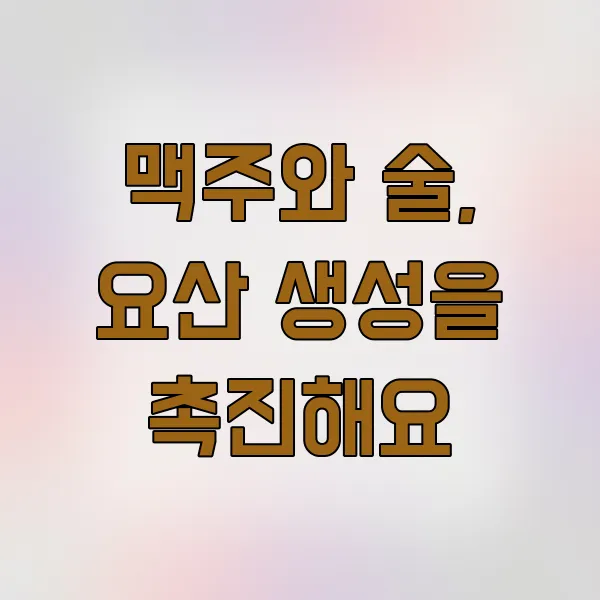 통풍 환자분들에게 술, 특히 맥주 는 정말 치명적일 수 있어요. 맥주에는 퓨린이 함유되어 있을 뿐만 아니라, 알코올 자체가 체내 요산 생성 을 촉진하고 요산 배출을 방해하기 때문이에요.