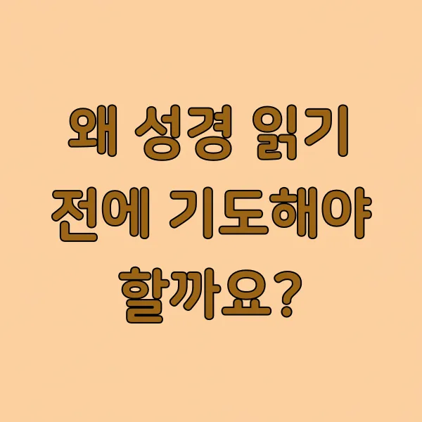 Q1. 매번 성경 읽기 전에 기도를 꼭 해야 하나요? A1. 필수는 아니지만, 기도는 성경 말씀을 더 깊이 이해하고 삶에 적용하는 데 큰 도움을 줍니다. 마음을 준비하는 과정이라고 생각하면 좋습니다.