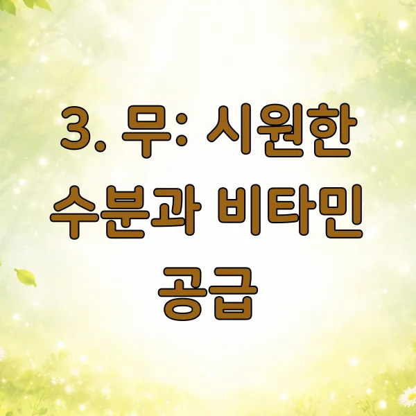3. 무 : 시원한 수분과 비타민 공급