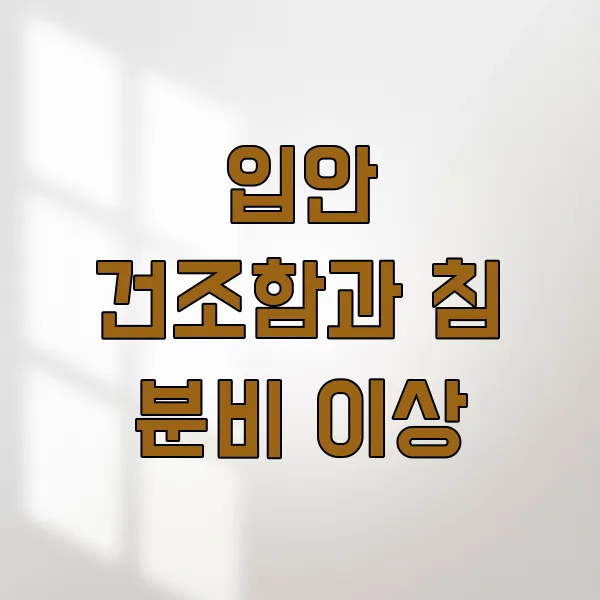염증으로 인해 침샘의 기능이 저하되면서 평소보다 입안이 마르는 느낌 을 받을 수 있습니다. 이는 침 분비량이 줄어들었기 때문이에요.